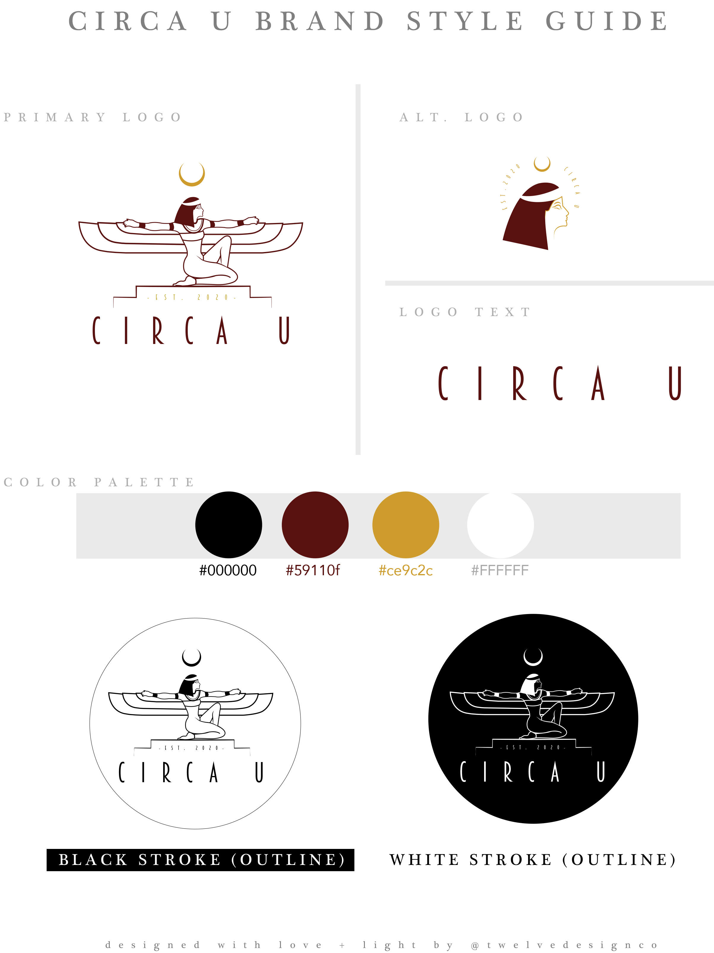 Circa U received a brief brand guide that included the primary logo, alternate logo, typography, and color palette.